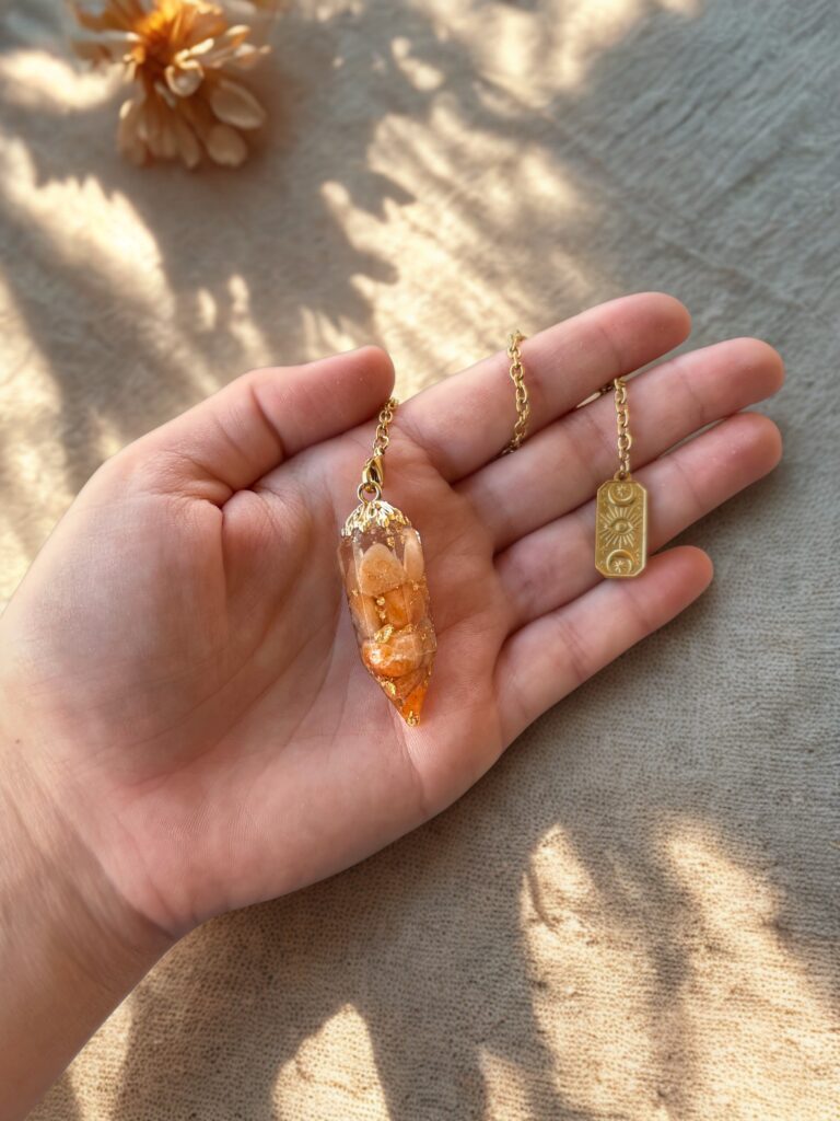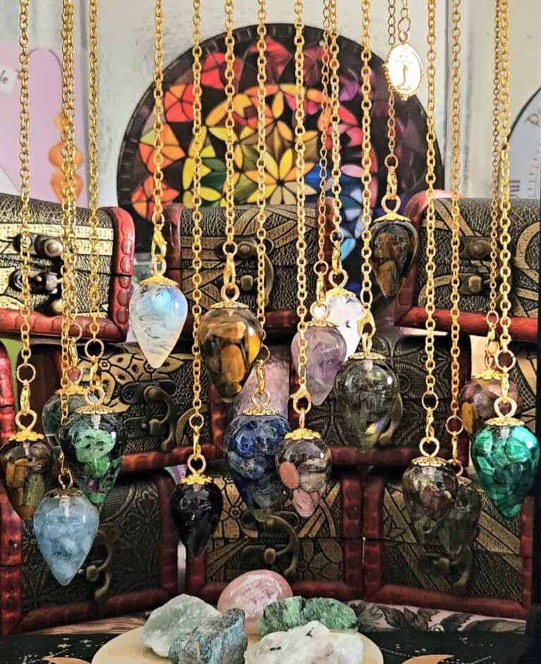 Chaque pendule que je crée est bien plus qu’un simple objet : c’est la rencontre entre votre énergie, la vibration de la pierre et mon savoir-faire.